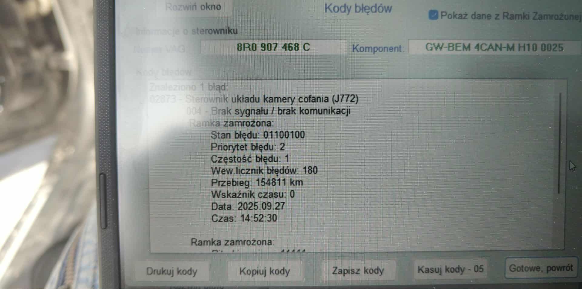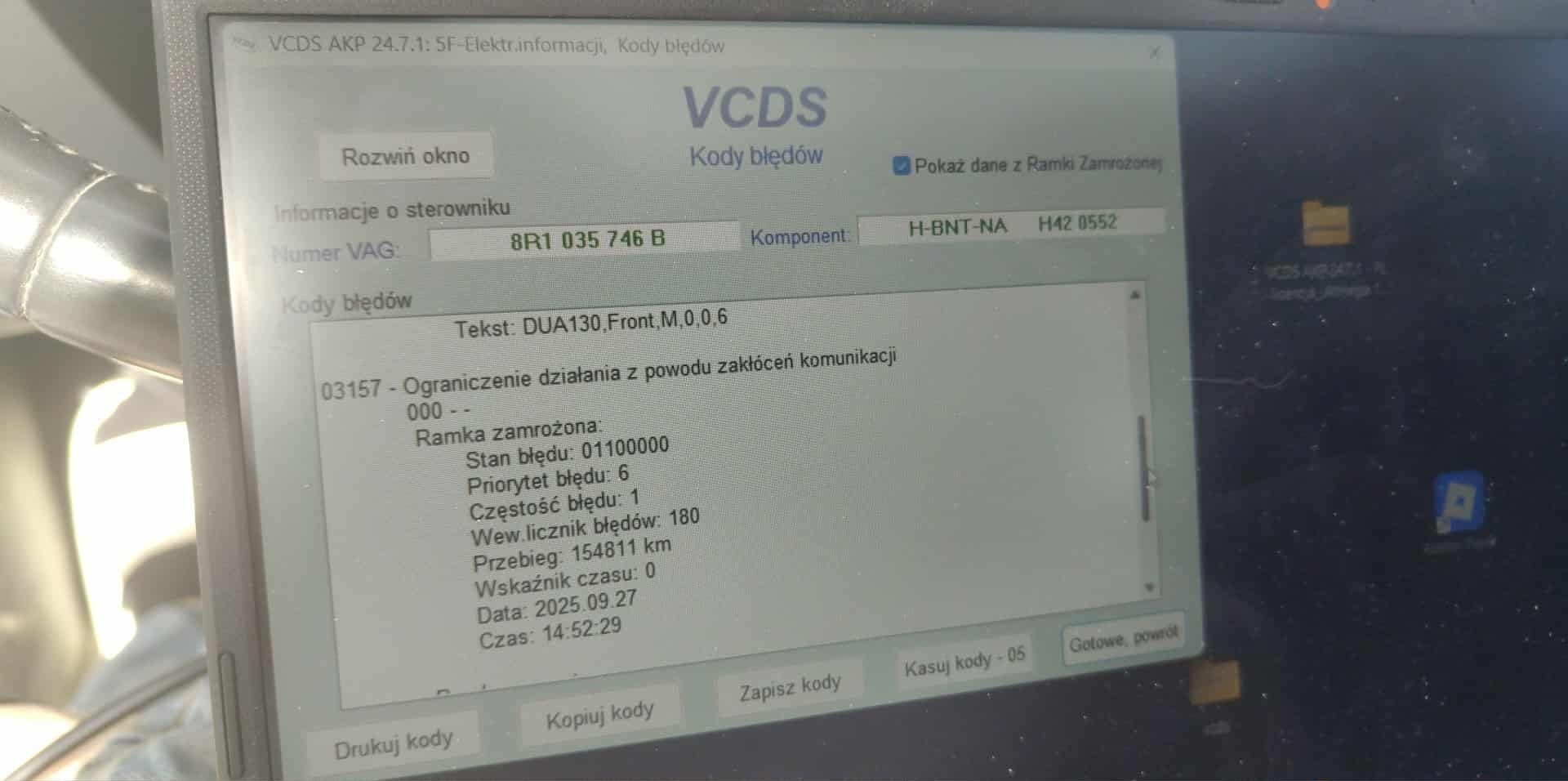 Fushigina0001 Opublikowano 1 godzinę temu Opublikowano 1 godzinę temu Witam serdecznie wszystkich kolegów na forum! Mam pewien problem z moim samochodem audi A5 8t lift USA. Oto co się dzieje: Kompletnie nie działa kamera cofania w mmi pokazuje jako system obecnie niedostępny Kompletnie nie działają LEDy do jazdy dziennej. Świeci tylko lewa lampa, prawa jest całkowicie martwa. Przez VCDS nie mogę w ogóle połączyć się ze sterownikiem lampy, niezależnie od tego, ile razy próbuję. Nie da się otworzyć bagażnika z kluczyka. Klimatyzacja w ogóle się nie załącza. Przy otwieraniu samochodu z kluczyka prawa strona drzwi pozostaje zamknięta – dopiero mogę ją otworzyć guzikiem od strony kierowcy. Czy te objawy mogą wskazywać na uszkodzony sterownik BCM1? Może ktoś miał podobny problem i podzieli się doświadczeniem? Będę wdzięczny za wszelkie rady, sugestie diagnostyki czy ewentualne rozwiązania. Pozdrawiam i dzięki z góry!
